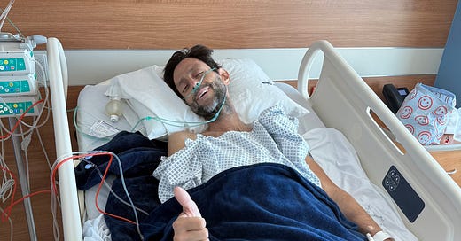 There is a possibility that John will have a reaction to the immunotherapy treatment (this happened to him round one, treatment #3 in October 2024) where he would have a whole-body, knocked-out, flu-like reaction. The nerve block won’t help with that, of course. This reaction would be unfortunate, but not a bad sign, not dangerous. No way to know if he will have this reaction, or not. This guys deserves every break, so please please please hopefully not. And the nerve block will continue to manage the pain outside of the flu-like reaction.